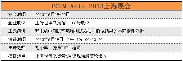 蘇州泰思特電子科技有限公司2013年6月將參加“PCIM Asia 2013上海展會”、“2013年中國(成都)電子展”及“2013中國國際電磁兼容與干擾暨安規(guī)測試認證展覽會”。