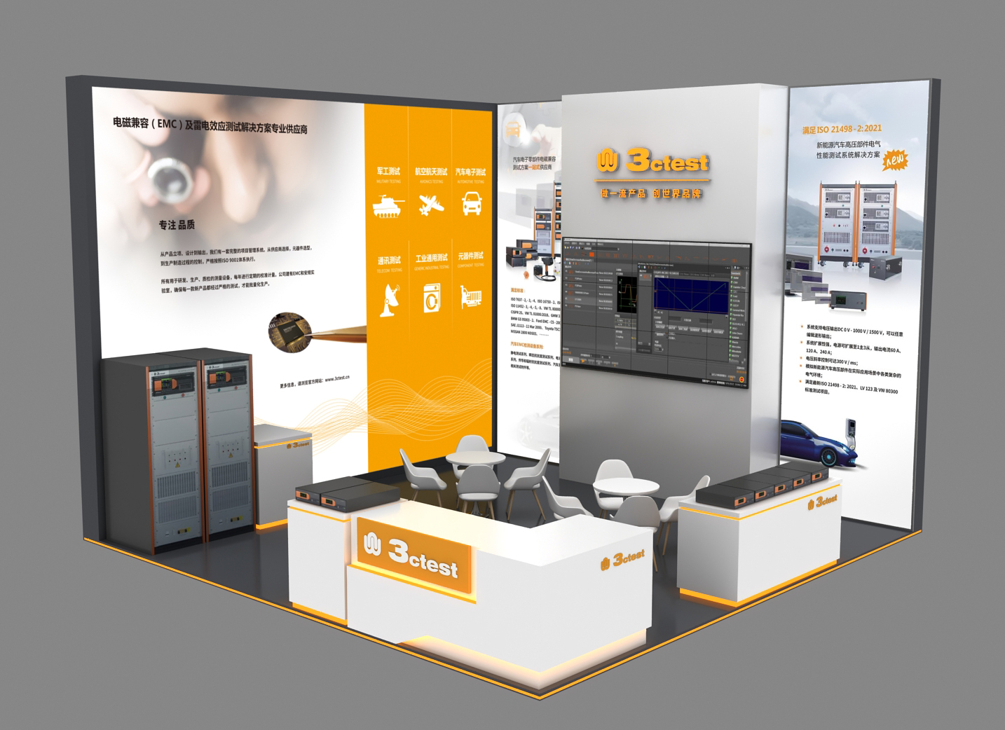本次展會泰思特主要亮相的產品有:汽車電子測試系統、151系列國軍標測試系統以及靜電放電模擬器、組合式抗擾度測試儀等EMS抗擾度測試系統。