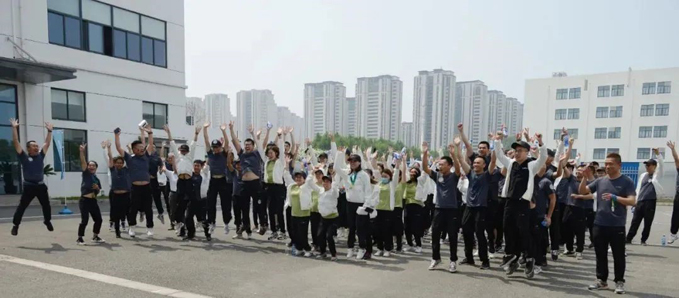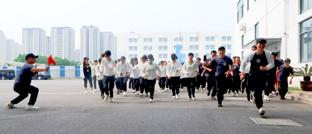 熱身完畢,全體員工在起跑線前列隊,隨著黃總的一聲號令,選手們如在弦之箭般猛然飛出,離開比賽起點,跑道兩側的觀眾和工作人員也在為他們吶喊助威。