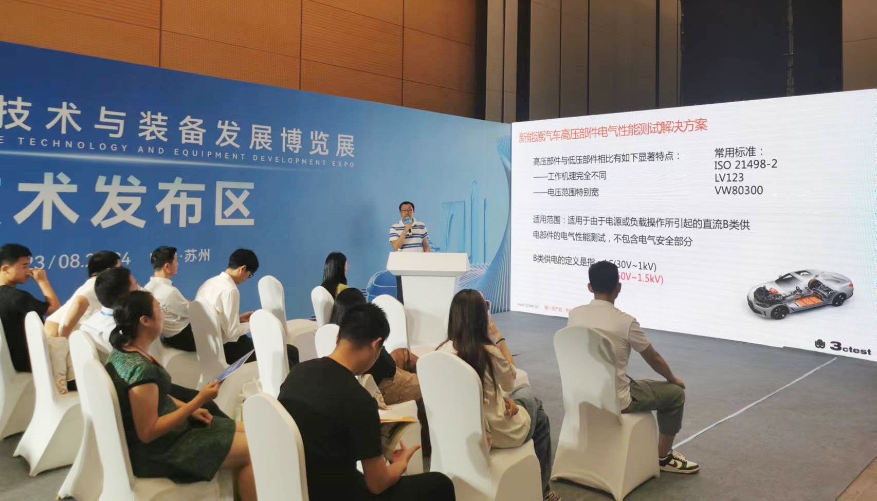 2023年8月21-24日,由工業和信息化部裝備工業發展中心、江蘇省工業和信息化廳、蘇州市人民政府以及中國汽車工程研究院股份有限公司主辦的“2023汽車技術與裝備發展博覽展”在蘇州獅山國際會議中心隆重舉辦,蘇州泰思特電子受邀參會,并作了《新能源汽車高壓部件電氣性能測試解決方案》專題報告分享。