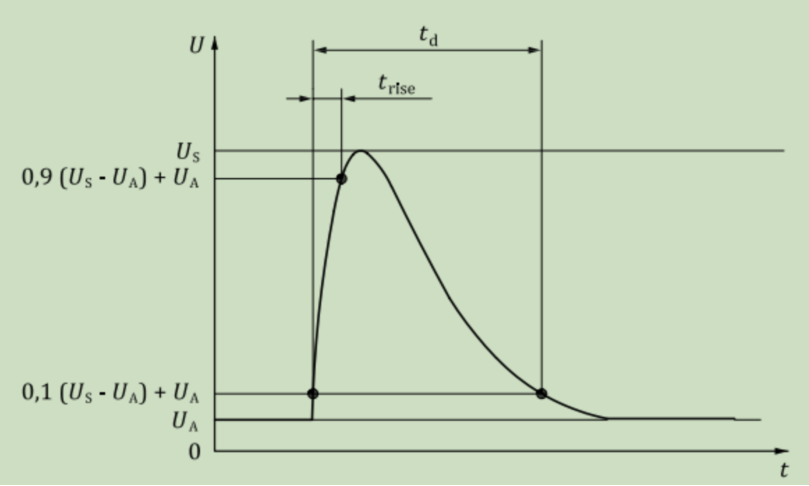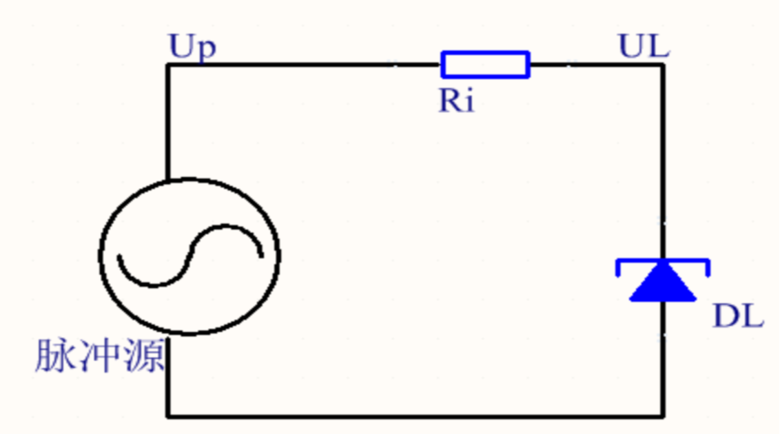根據標準,波形為雙指數波。由于Tr << Td,脈沖形成回路簡化為上圖。