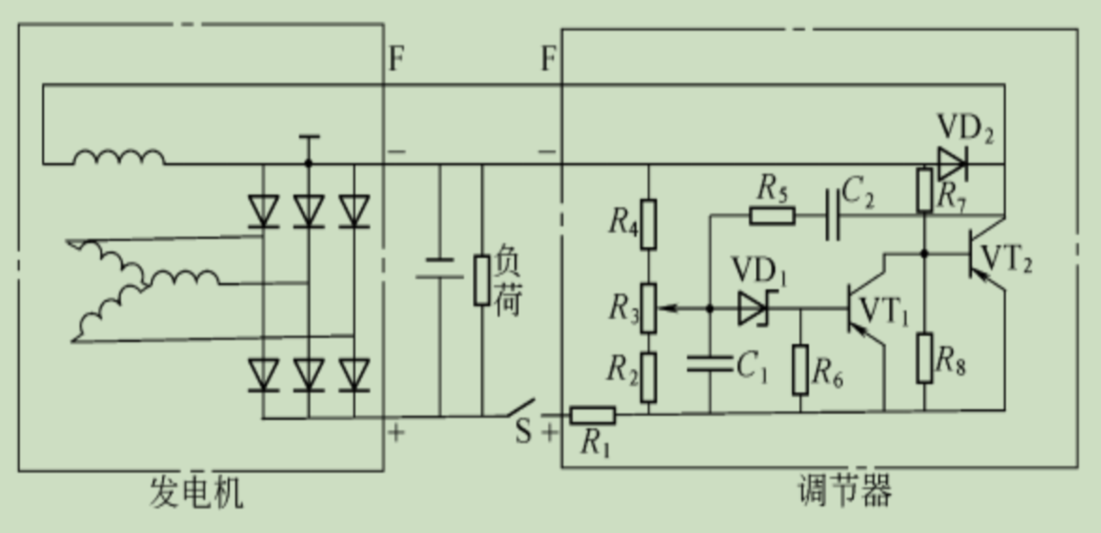 交流發電機限幅是測量輸出端的電壓值,當電壓過高,則切斷勵磁電路。