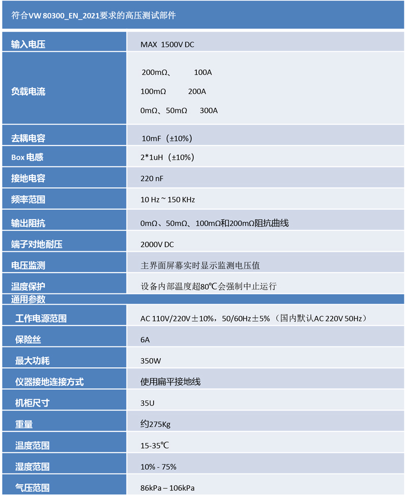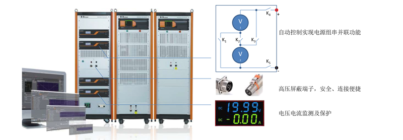 EVTS 150C30依據(jù)ISO 21498-2開發(fā)設(shè)計,可應(yīng)用于電動汽車B類電路系統(tǒng)及元器件測試,同時擴(kuò)展兼容VW 80300_EN_2021以及LV 123等高壓電性能部件的試驗(yàn),也可滿足其他車廠如奔馳、寶馬等對高壓零部件的試驗(yàn)要求。EVTS 150C30是雙向性電源,即可作為電源,也可作為負(fù)載。最大輸出1500VDC/300A,最大功率150KW。