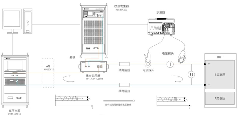 目的:驗(yàn)證高壓組件和高壓儲能裝置中的電子設(shè)備在高壓系統(tǒng)中產(chǎn)生的高壓電壓動態(tài)下的穩(wěn)定性。