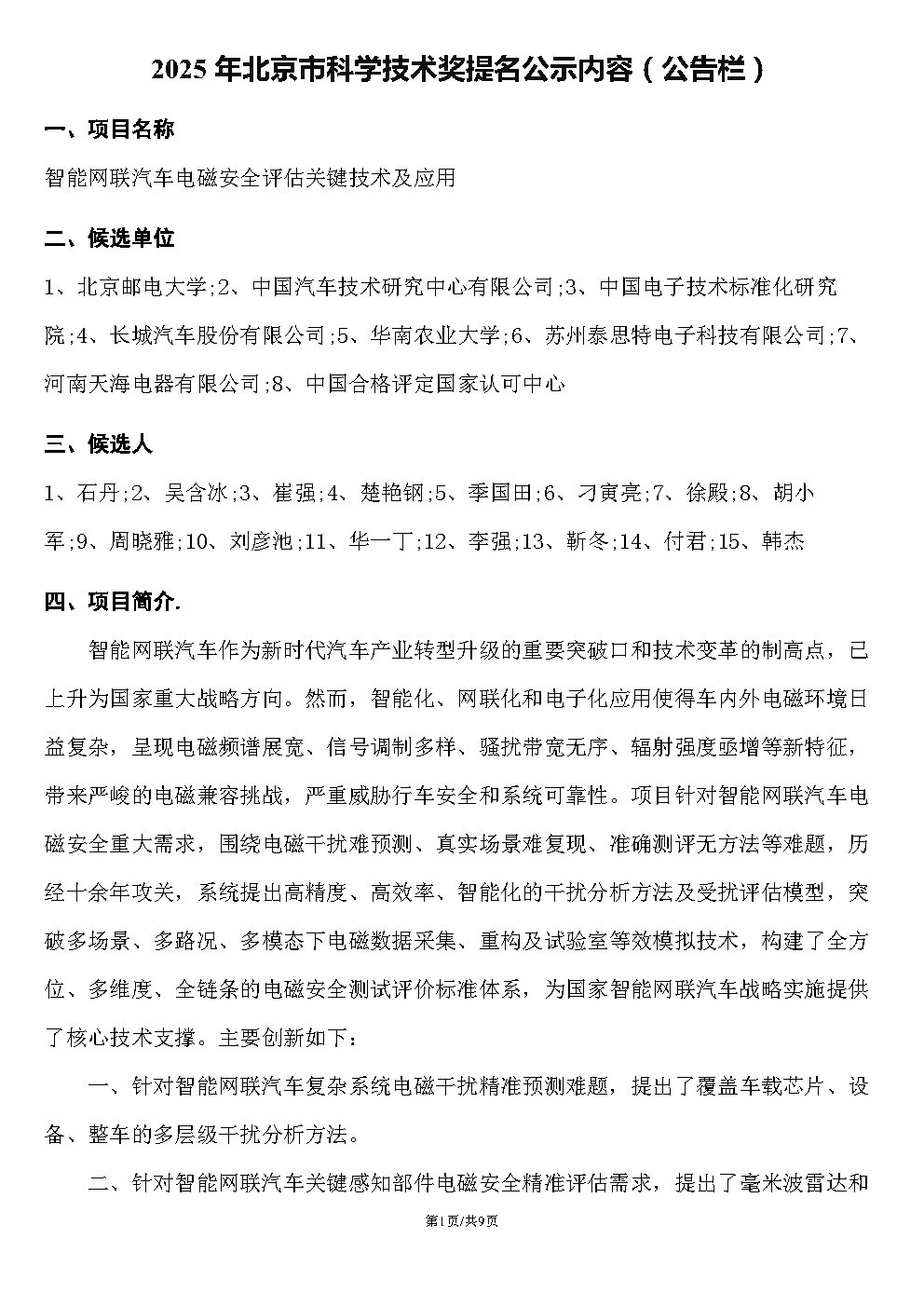 我司參與的“智能網(wǎng)聯(lián)汽車電磁安全評(píng)估關(guān)鍵技術(shù)及應(yīng)用”提名項(xiàng)目進(jìn)行公示,公示期:2025年6月 20日至2025年6月26日。公示期內(nèi)任何單位或個(gè)人若對(duì)擬提名項(xiàng)目及人員有異議,可在公示期內(nèi)以書面形式反饋,并簽署真實(shí)姓名,注明聯(lián)系方式,否則不予受理。”