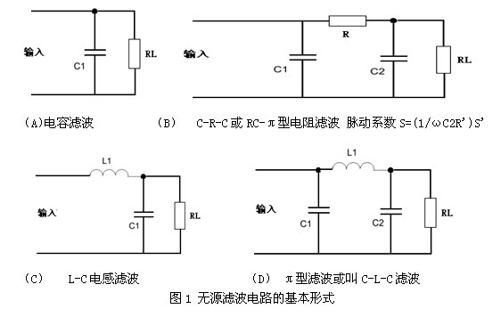 常用的濾波電路有無源濾波和有源濾波兩大類。無源濾波的主要形式有電容濾波、電感濾波和復式濾波(包括倒L型、LC濾波、LCπ型濾波和RCπ型濾波等)。有源濾波的主要形式是有源RC濾波,也被稱作電子濾波器。直流電中的脈動成分的大小用脈動系數來表示,此值越大,則濾波器的濾波效果越差。