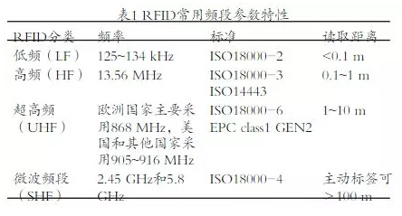 在應用方面,低頻和高頻的電子標簽,讀取距離較短、數據量少,因此適合用于近距離的識別。超高頻系統由于具有不同的電磁感應方式,讀寫器和標簽的讀取距離可>10 m,數據速率可達640 kbps。RIFD常用頻段參數特性,見表1。