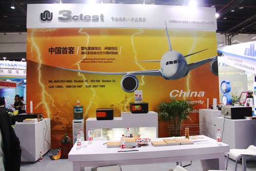 展會(huì)上,蘇州泰思特展廳設(shè)計(jì)以明亮的暖橙色調(diào)為主色,主背景突出展示了公司自主研發(fā)的中國(guó)首套飛機(jī)整機(jī)防雷直接效應(yīng)測(cè)試系統(tǒng)、間接效應(yīng)測(cè)試系統(tǒng),強(qiáng)烈的視覺(jué)沖擊力吸引了眾多觀展人士的駐足。