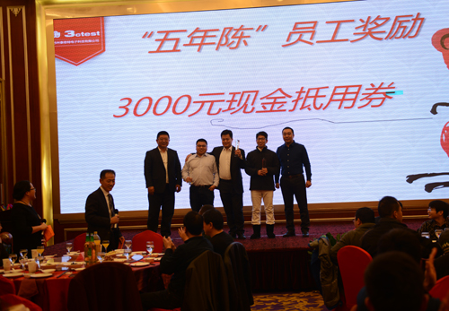 首先進行的是“5年陳員工頒獎儀式”,公司領導向2015年在泰思特工作滿5年的員工頒發紀念獎杯,感激為公司發展壯大奉獻美好青春和非凡才能的老員工們。