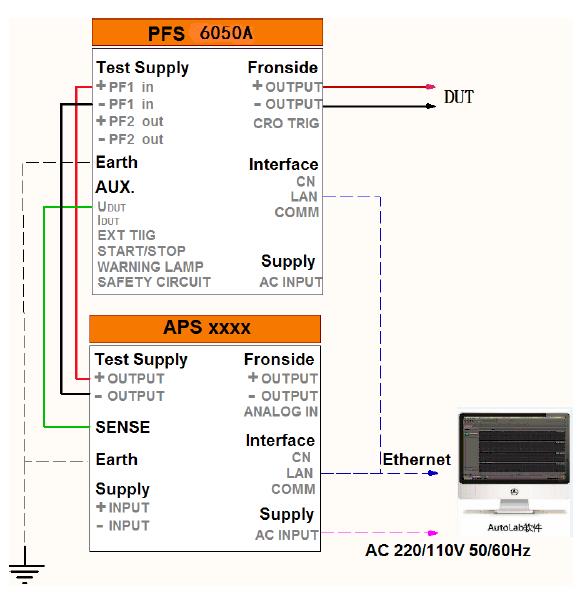 對PFS XXA1系列汽車電源故障模擬器的操作既可手動進行,也可以通過以太網接口,由AutoLab軟件來控制。直流切換開關最大可以承載80V,支持42V供電系統的測試。