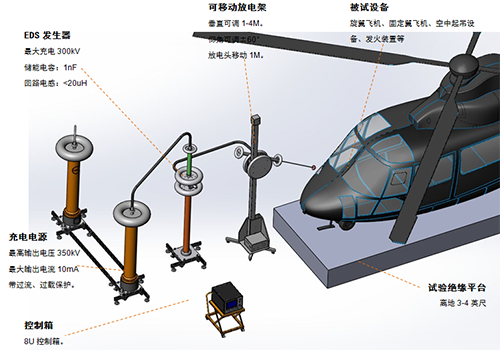 本靜電放電發生器是為模擬飛機或發射器系統在天空高速飛行帶上非常高的靜電后能否安全、正常可靠工作或損壞等專用發生器,它是我們多年來研制的一系列靜電放電發生器的基礎上研制而成,其放電電壓達到300kV,符合MIL-STD-464C、MIL-STD-331D、 GJB1389A、GJB573A、 GJB8848等標準。