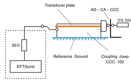 平板傳感器和TFB 500(50Ω衰減器)之間的距離不會超過0.1m。典型測試布置如圖: