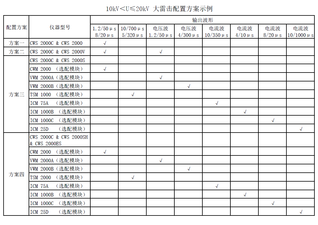 CWS 2000V包含組合波、脈沖電壓波功能;組合波功能的技術參數,詳見CWS 2000,不做重復說明 |